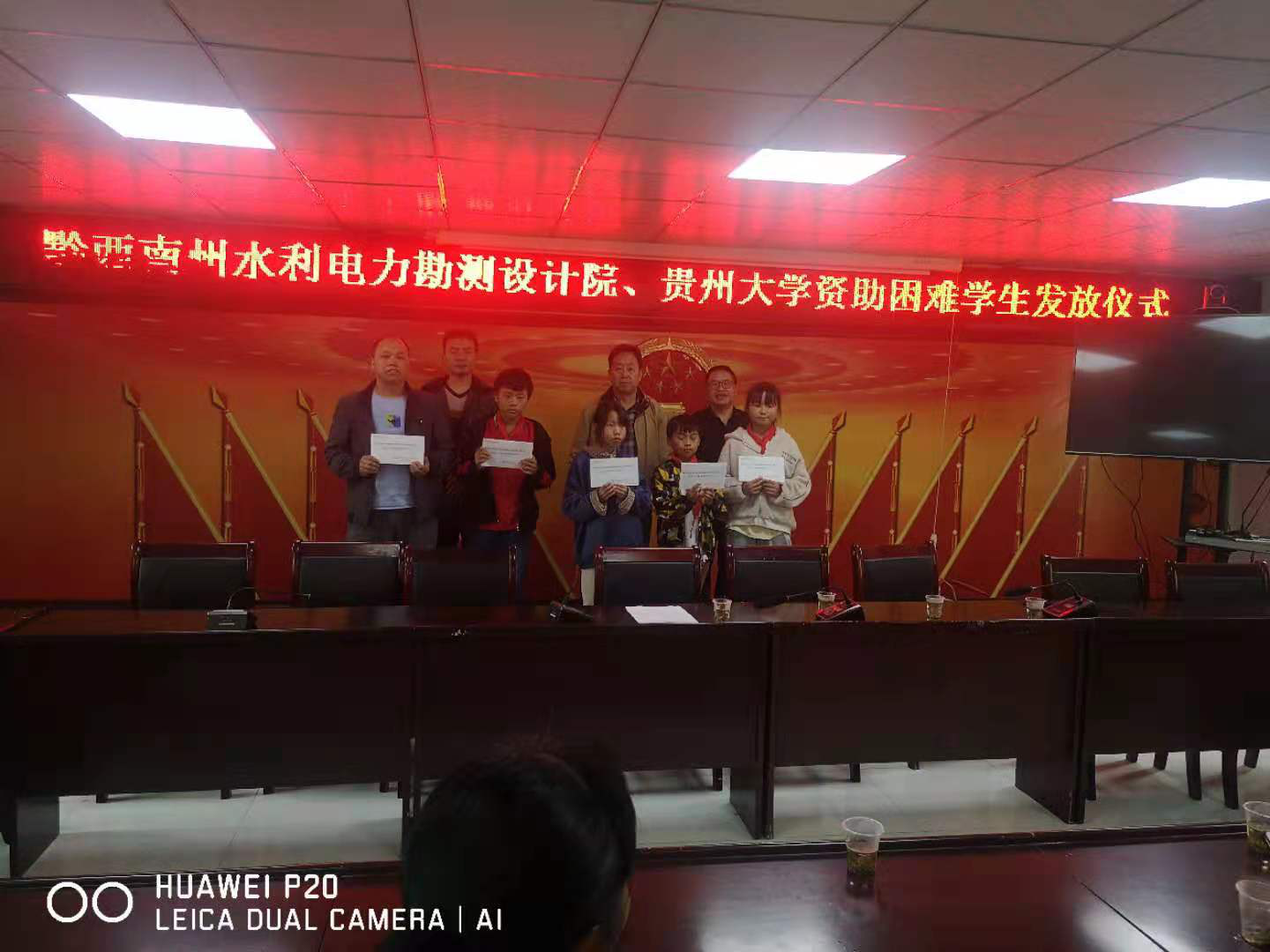 2021年5月7日下午,黔西南州水利电力勘测设计院工会主席、办公室主任金利强、院工会成员杨昌杰、林龙一行赴贞丰县平街乡开展捐资助学活动。将黔西南州水利电力勘测设计院全院职工的爱心送至贞丰县平街乡的5名贫困学生(黄飞顺、石兴兴、李飘、聂维成、冉启飞,每名同学800元,共计4000元)手中,并勉励该5名学生好好学习,将来回报社会。黔西南州水利电力勘测设计院作为水利勘测设计单位,基于承担社会责任、为教育